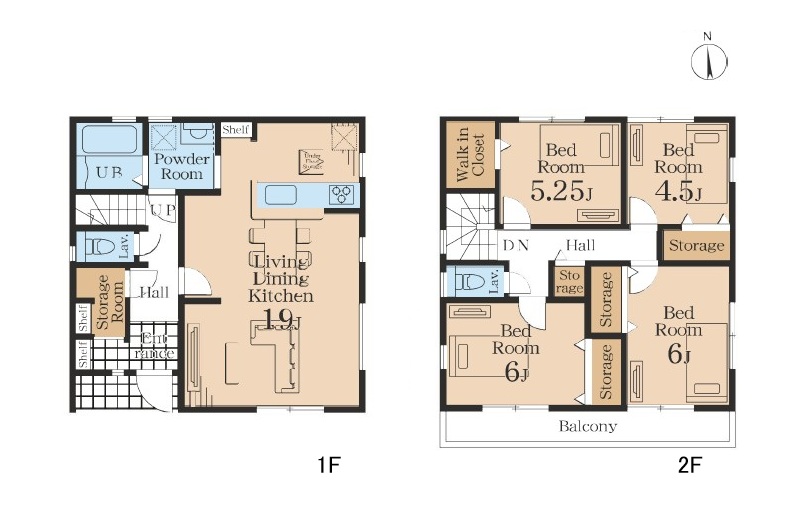 1階 LDK19.0畳 / 2階 洋室5.2畳 2部屋 / 2階 洋室6.3畳 / 2階 洋室4.8畳 |