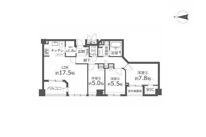 間取内容 | LDK17.5畳 / 洋室7.8畳 / 洋室5.5畳 / 洋室5.0畳 | ||