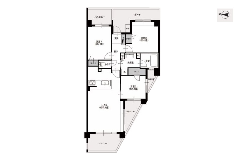 LDK15.6畳 / 洋室4.6畳 / 洋室5.9畳 / 洋室5.8畳 |