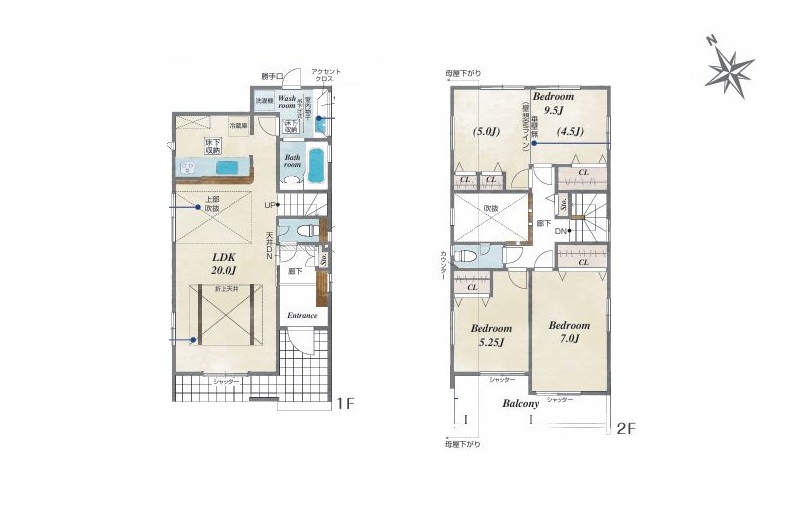 1階 LDK19.5畳 / 2階 洋室7.8畳 / 2階 洋室5.2畳 / 2階 洋室5畳 2部屋 / 洋室 |