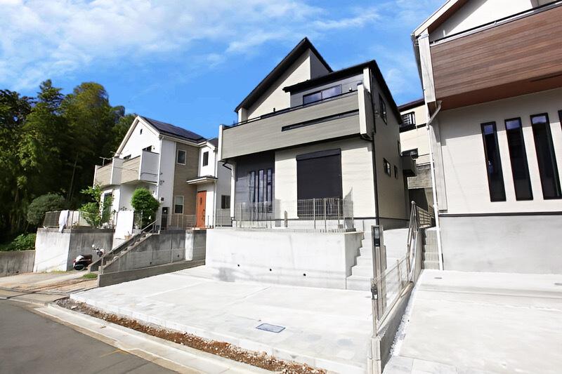 「鶴ヶ峰」駅バス利用(停歩5分)。新築分譲住宅全2棟!!天井を高くリビングに開放感をプラスした折上天井。2部屋から行き来できる続きバルコニー♪カースペース複数台駐車可能です。