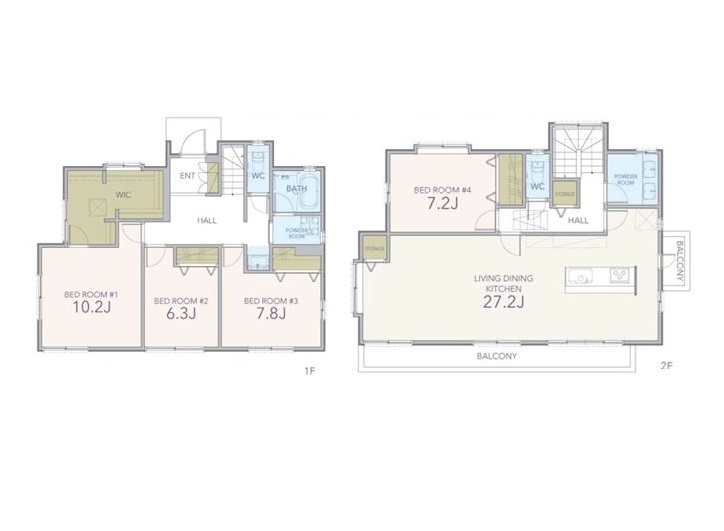 1階 LD13.5畳 / 1階 K5.4畳 / 1階 和室8.0畳 / 2階 洋室8.4畳 / 2階 洋室6.0畳 3部屋 |