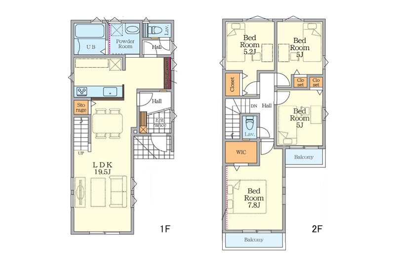 1階 LDK19.5畳 / 2階 洋室7.8畳 / 2階 洋室5.2畳 / 2階 洋室5畳 2部屋 / 洋室 |