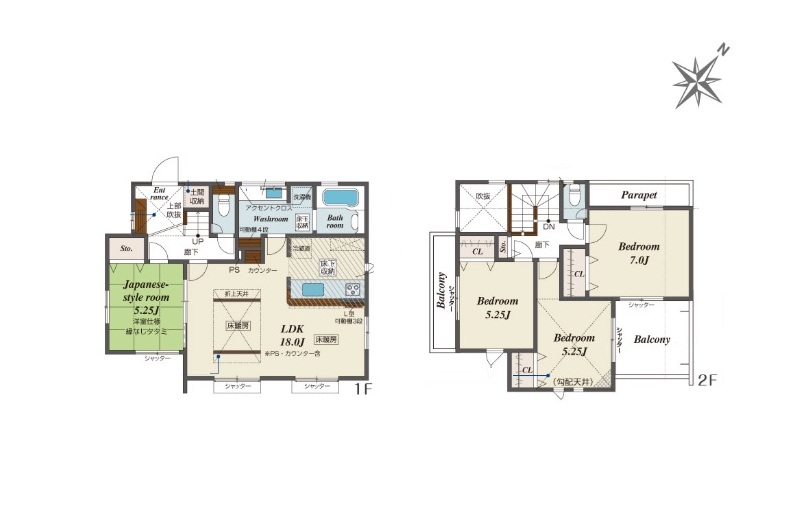 1階 LDK20畳 / 2階 洋室7.2畳 / 2階 洋室6畳 2部屋 / 2階 洋室5.2畳 |