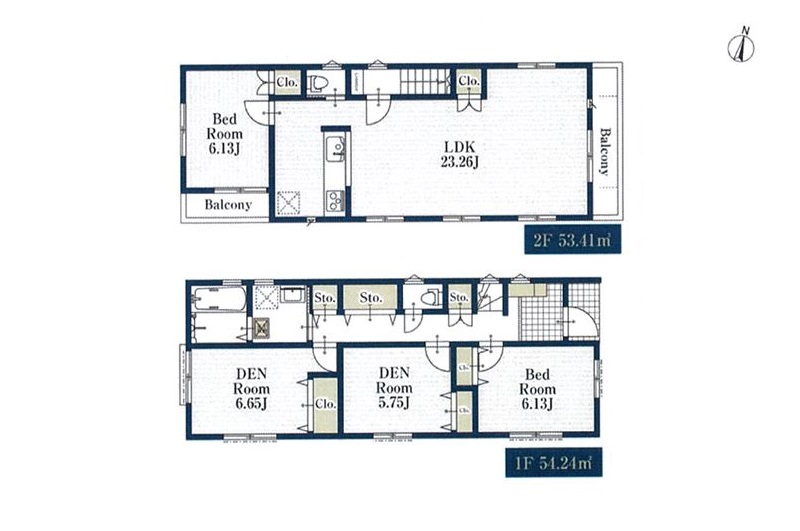1階 洋室6.1畳 / 1階 S5.7畳 / 1階 S6.6畳 / 2階 LDK23.2畳 / 2階 洋室6.1畳 |