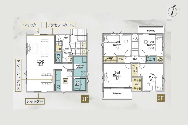 1階 LDK20.8畳 / 2階 洋室8.0畳 / 2階 洋室5.8畳 / 2階 洋室5.3畳 2部屋 |