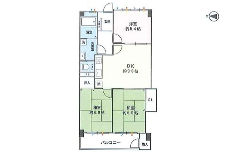DK9.6畳 / 和室6畳 2部屋 / 洋室5.4畳 |