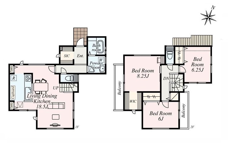 1階 LDK18.5畳 / 2階 洋室8.2畳 / 2階 洋室6.0畳 / 2階 洋室6.2畳