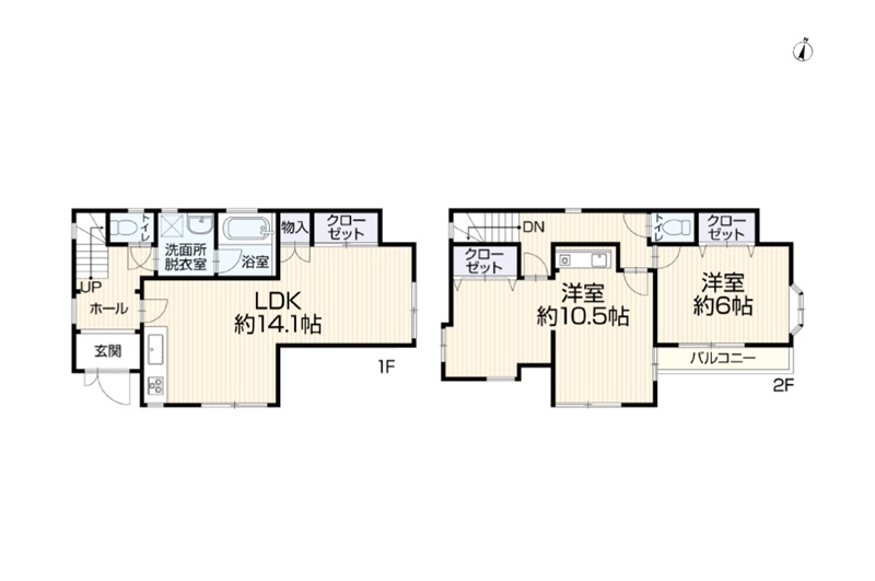 1階 LDK14.1畳 / 2階 洋室10.5畳 / 2階 洋室6畳