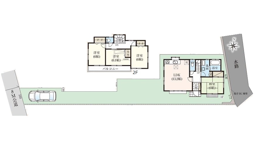 - 1階 LDK13.2畳 / 1階 和室6.0畳 / 2階 洋室6.1畳 / 2階 洋室6.0畳