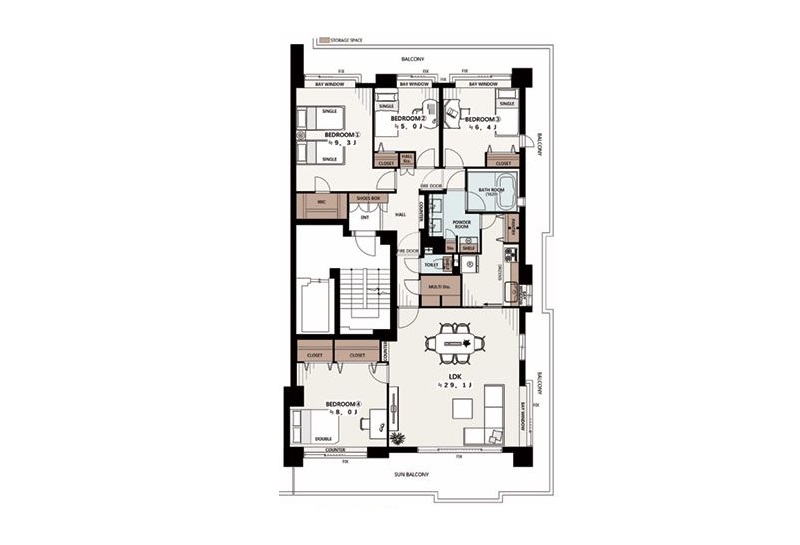 - LDK29.1畳 / 洋室8.0畳 / 洋室9.3畳 / 洋室6.4畳 / 洋室5.0畳